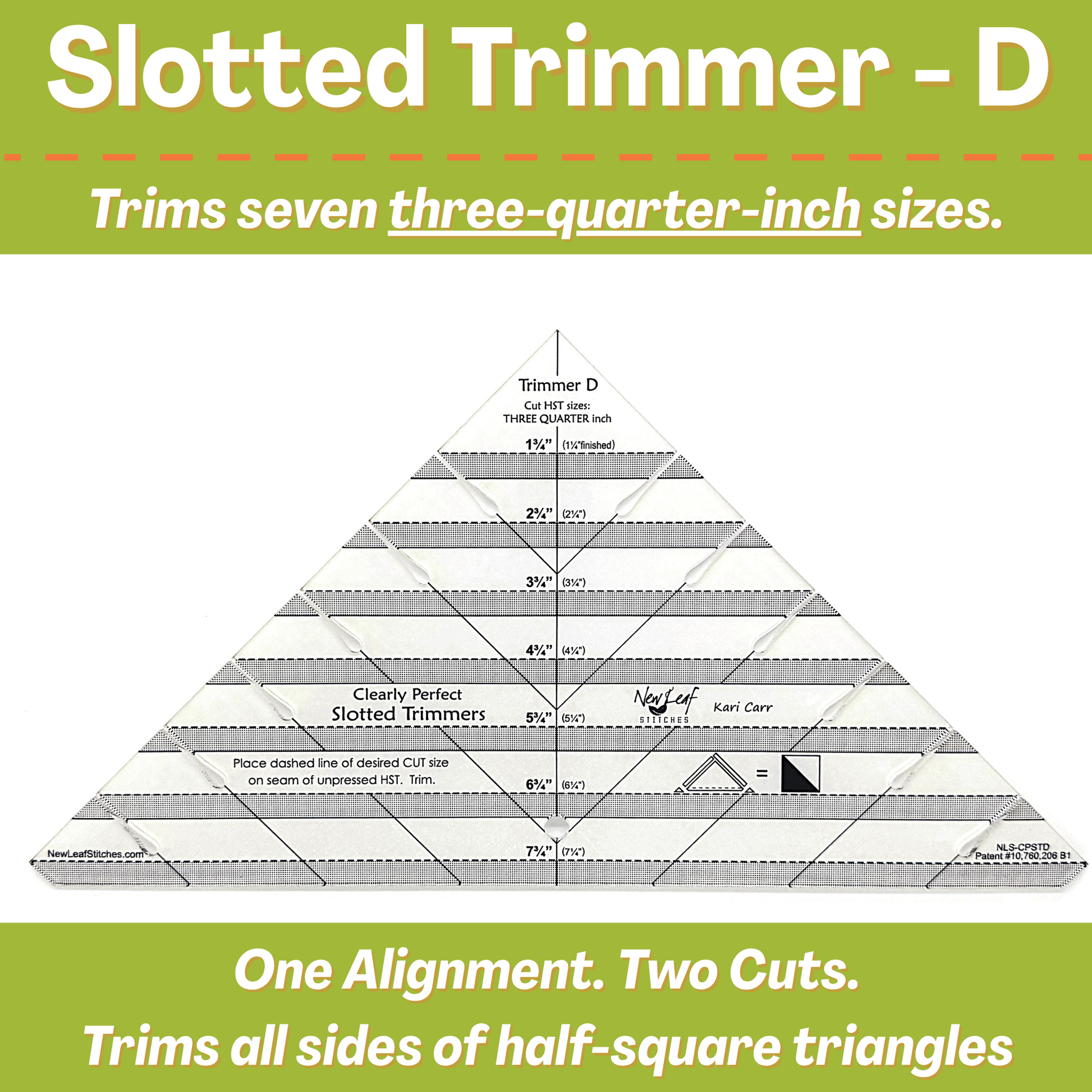 Clearly Perfect Slotted Trimmer D – Precision Trimming for 3/4" Half-Square Triangles